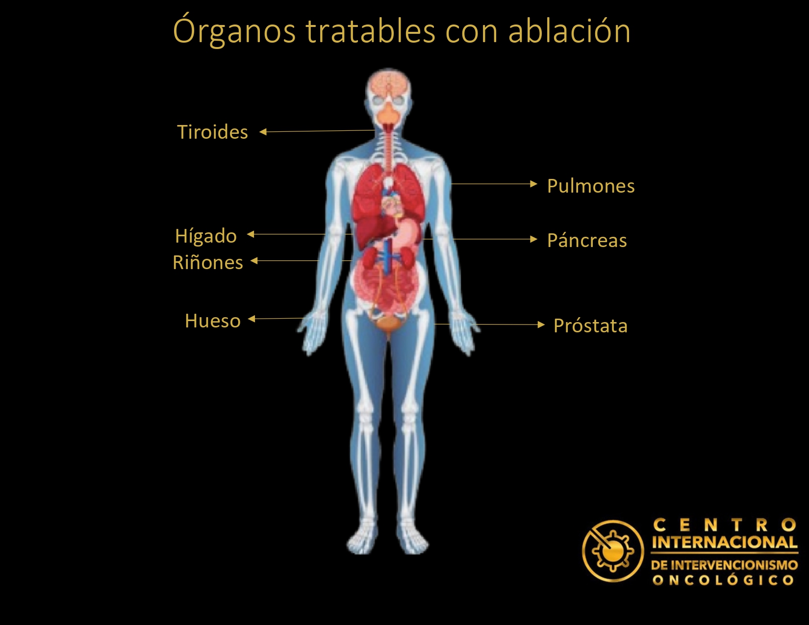 La ablación se utiliza en carcinoma hepatocelular no resecable, colangiocarcinoma intrahepático, metástasis de tumores neuroendocrinos y de colon. La combinación con quimioembolización mejora la eficacia en tumores medianos a grandes.